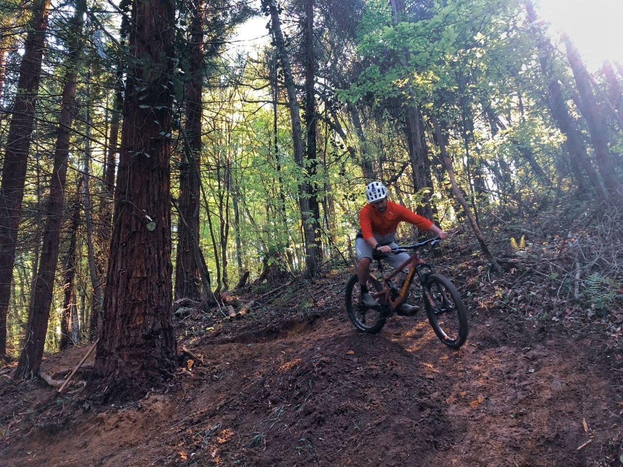 Общий перепад составляет порядка 400 метров. В одном спуске можно проехать 3 разных трейла: около 1 км, 1,4 км и 600 м. Подъём — своим ходом по лесопарку, но благодаря электропомощи впечатление аккуратно смягчается. Это позволяет не просто спускаться, но и наслаждаться видами по пути наверх.