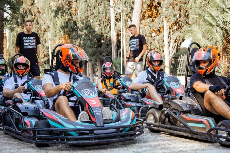 Трассы оборудованы современными картами Rimo: бензиновыми и электрическими. Есть карты мощные (около 9 лошадиных сил), есть для самых маленьких — с малой мощностью и возможностью управлять с сопровождающим. Время заезда обычно 10 минут, что позволяет прочувствовать драйв, выполнить 12-14 кругов в зависимости от скорости. Экипировка включена: защитный шлем, комбинезон, инструктор делает вводный инструктаж перед каждым заездом.