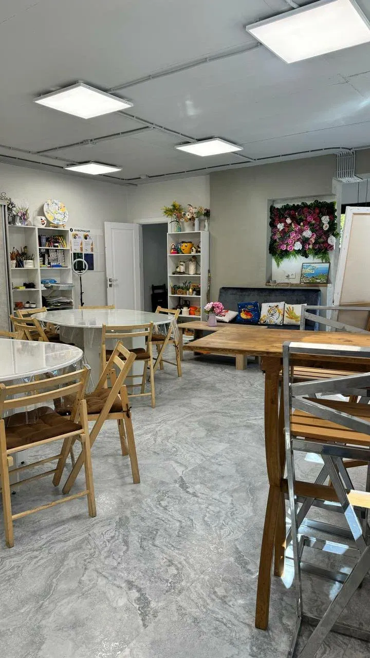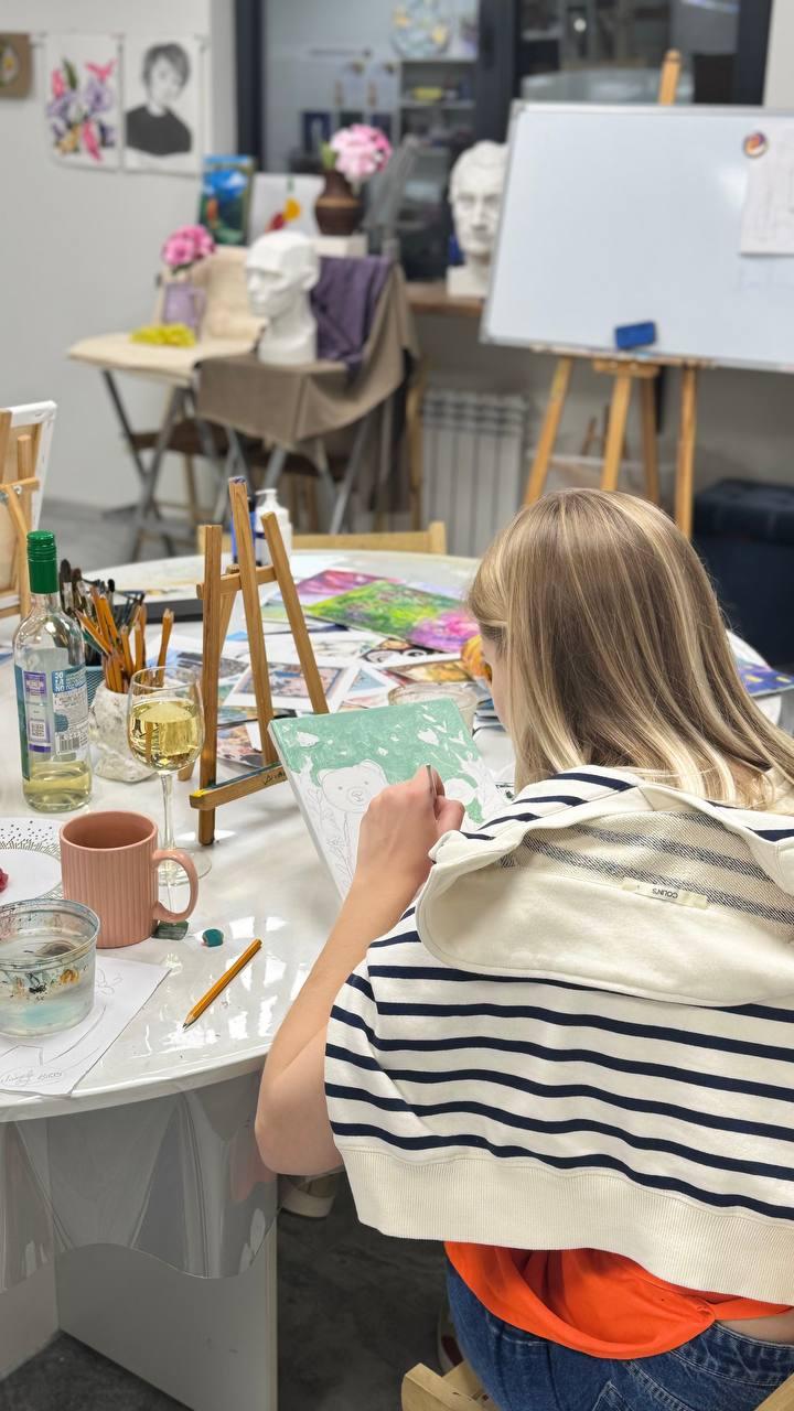В студии проводятся мастер-классы на разные темы: «Краски и вино», арт-свидания, арт-девичники, роспись по стеклу и др. Можно организовать выездной мастер-класс, отметить день рождения или другое мероприятие творчески. Занятия проходят в удобное время, расписание может зависеть от дня недели и формата.