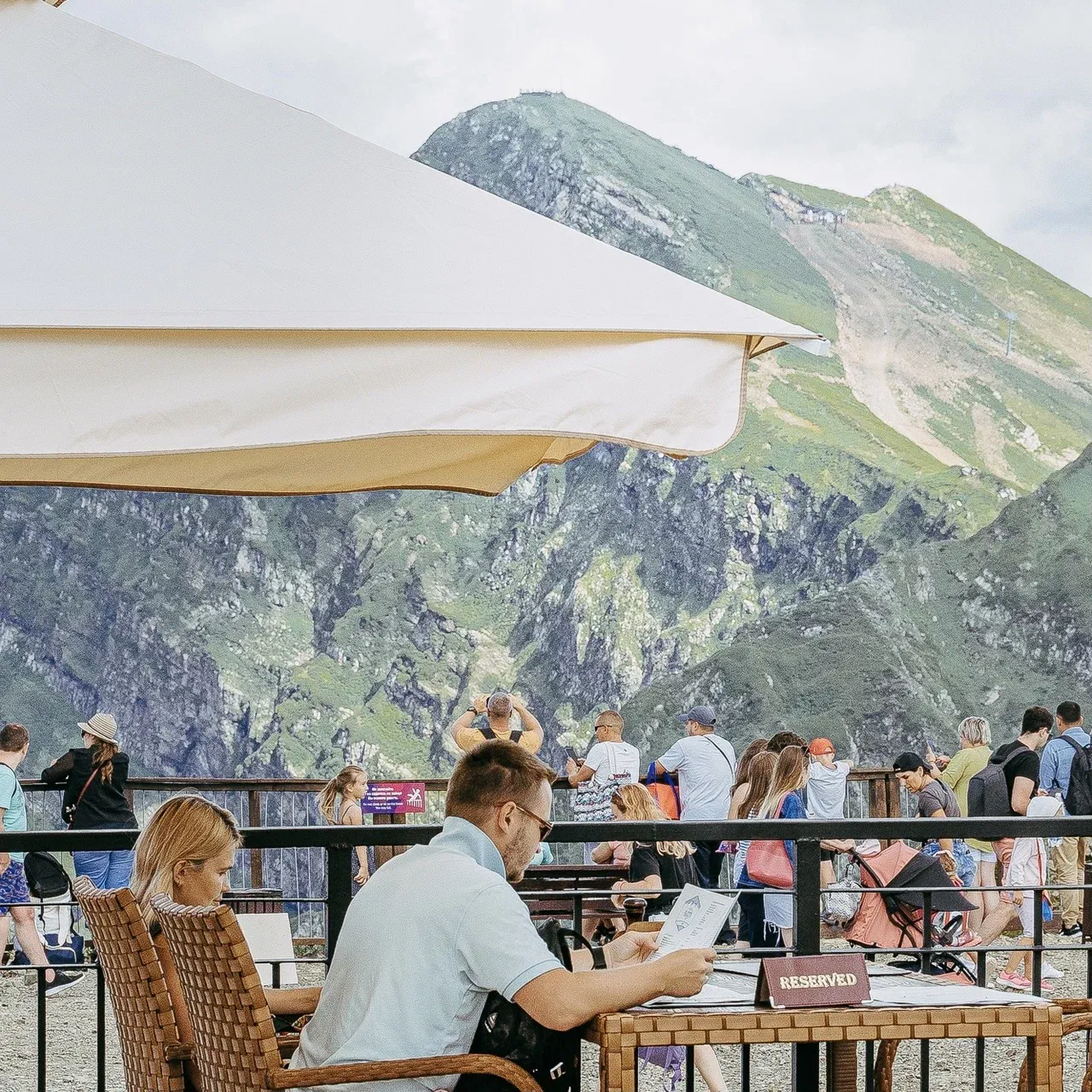 Высота 2320 — ресторан на вершине Роза Пик: черноморская и европейская кухня, локальные продукты, панорамный вид на Кавказ и море, завтраки, ужины и мероприятия.