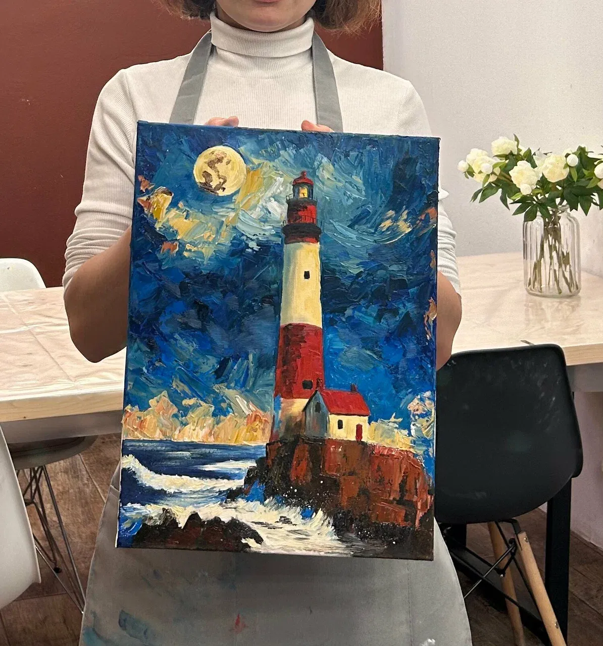 Для детей и подростков студия предлагает группы с 3 лет, где развивают творческое мышление, мелкую моторику, уверенность и навыки работы с цветом и формой. Взрослые могут выбрать одиночные занятия, групповые мастер-классы, арт-вечеринки или формат корпоративного события — студия готова на настройку под компанию. В расписании регулярно появляются мастер-классы по рисованию акрилом, живописи маслом, работы с эпоксидной смолой и спиртовыми чернилами.