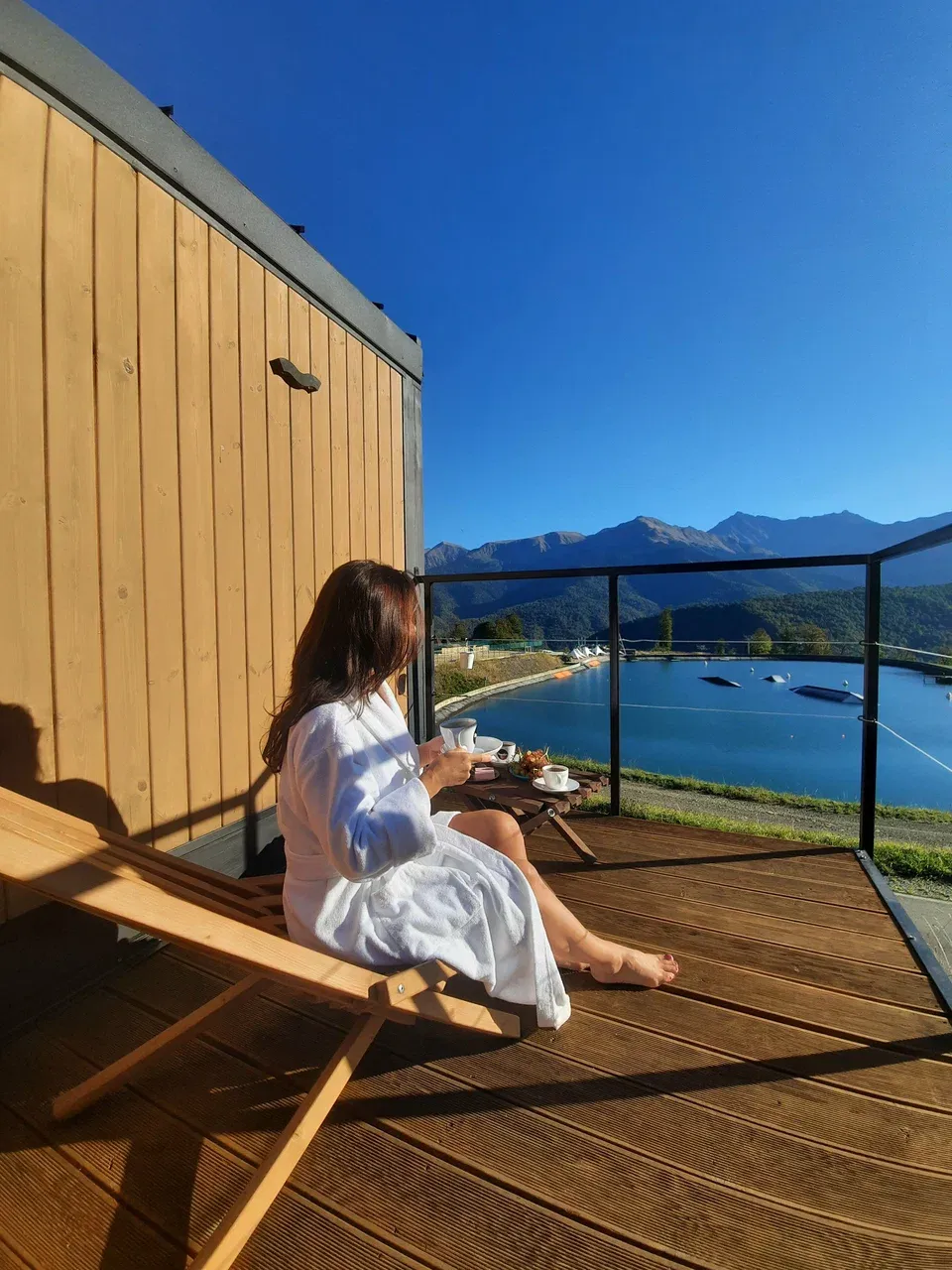 Подойдёт для тех, кто хочет отдыха с эстетикой, для пар, для романтических уик-эндов, для людей, ценящих вид, природу и комфорт. Также — для тех, кто хочет совместить актив с расслаблением: после подъёмников, треков или прогулок — пар, рыбалка, баня и отдых. Работает круглосуточно, по предварительной записи.