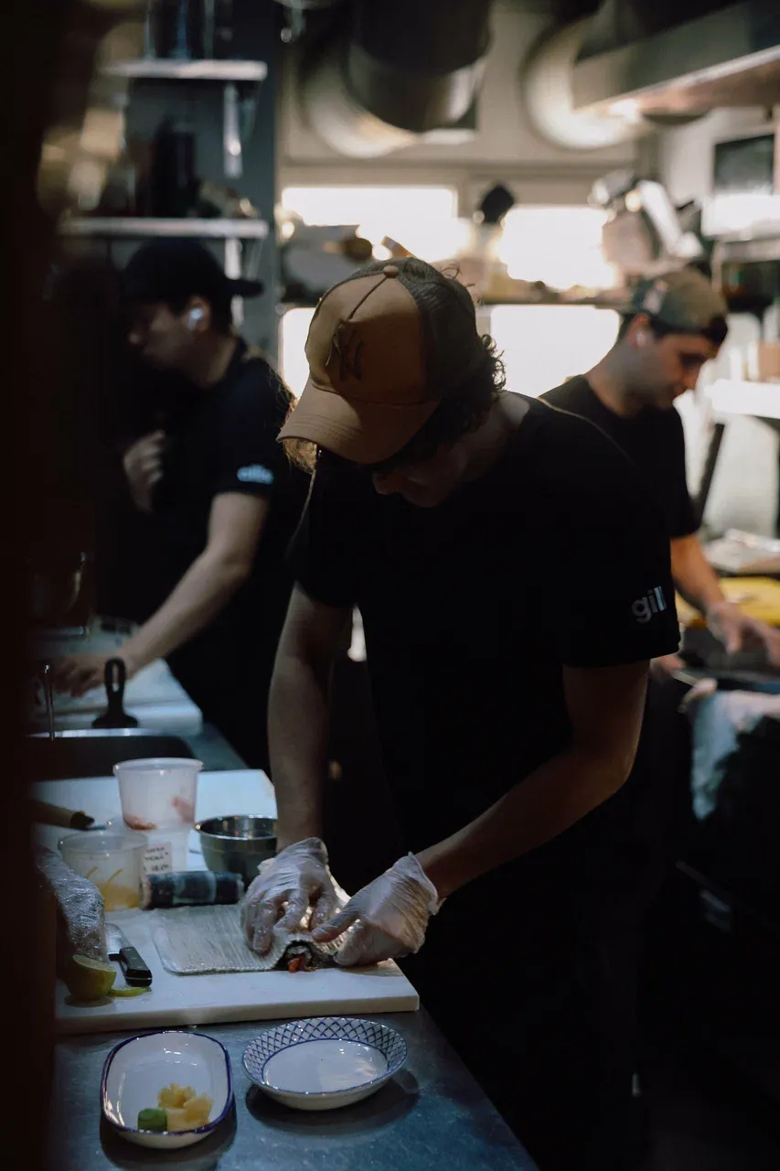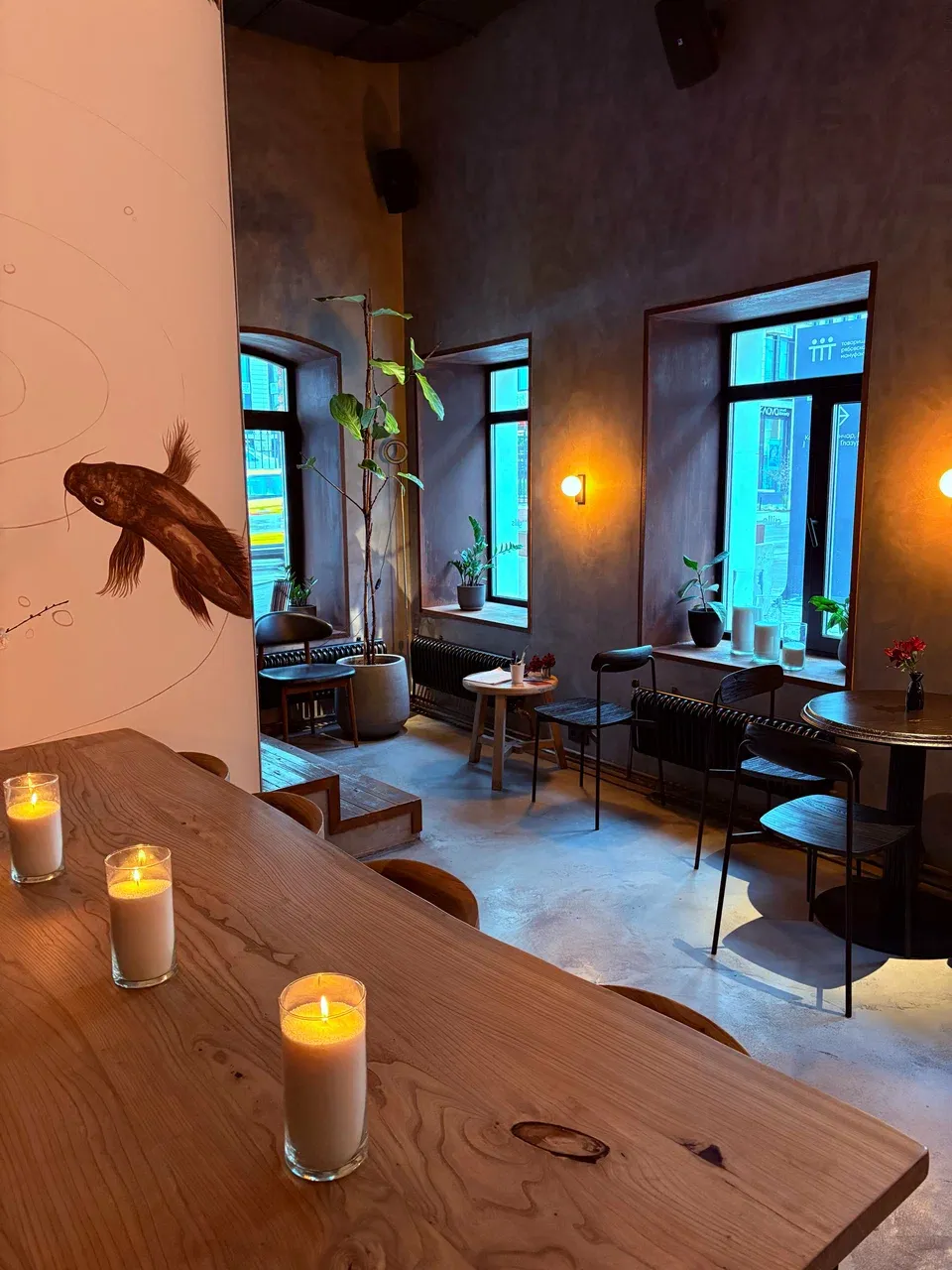 Gills Café — небольшое, но выразительное гастро-пространство, где японская кухня совпадает с атмосферой лёгкого вечернего отдыха. Интерьер выдержан в минималистичном стиле: натуральные материалы, тёплое освещение, уютные зоны за столиками создают пространство для неспешного ужина или встречи с друзьями.