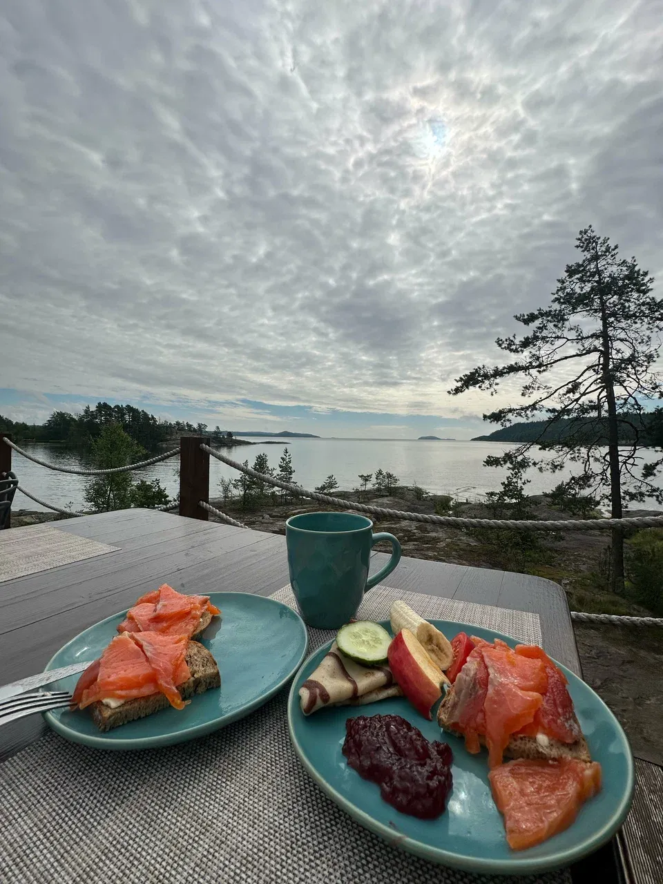 Следующий день начинается с завтрака, а затем — прогулка на аэролодке по Ладожским шхерам с панорамами и обедом-пикником на бревне. Готовят рыбу, подают горячий сбитень и закуски. После отдыха и общения у камина — мастер-класс по гравлаксу: вы учитесь солить рыбу по старинным рецептам. Вечером — гала-ужин в панорамной лаунж-зоне с видом на Ладогу, где звучат истории о традициях Карелии.